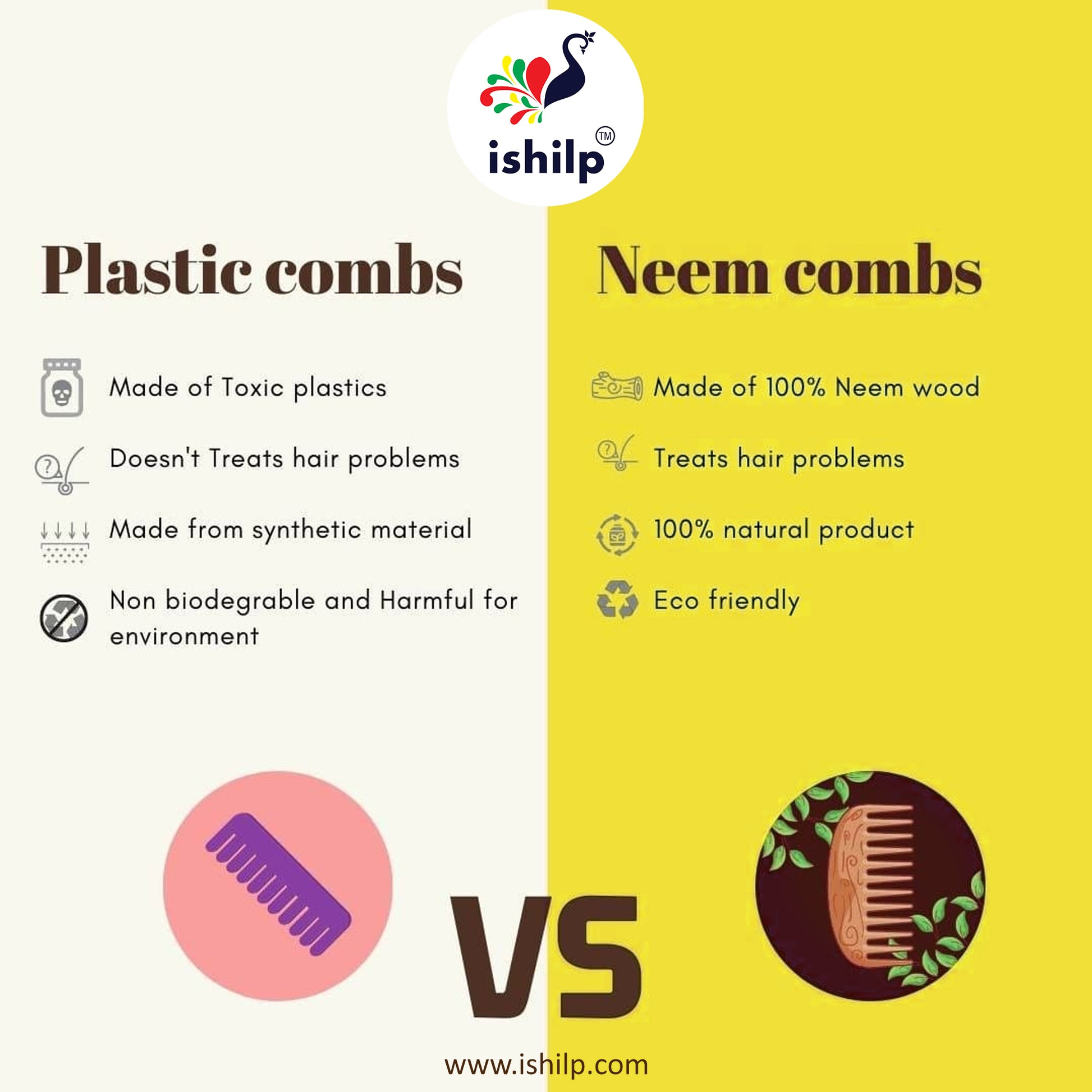 ishilp Neem Wood Comb controls hair loss and encourages re-growth. Made from wood of Indian Neem (Azadirachta Indica), this herbal comb has medicinal properties that reduce hair loss and dandruff. Regular combing with Neem comb also helps in removing lice. Unlike Plastic Comb, Neem Wood Comb does not snap hair because of static.